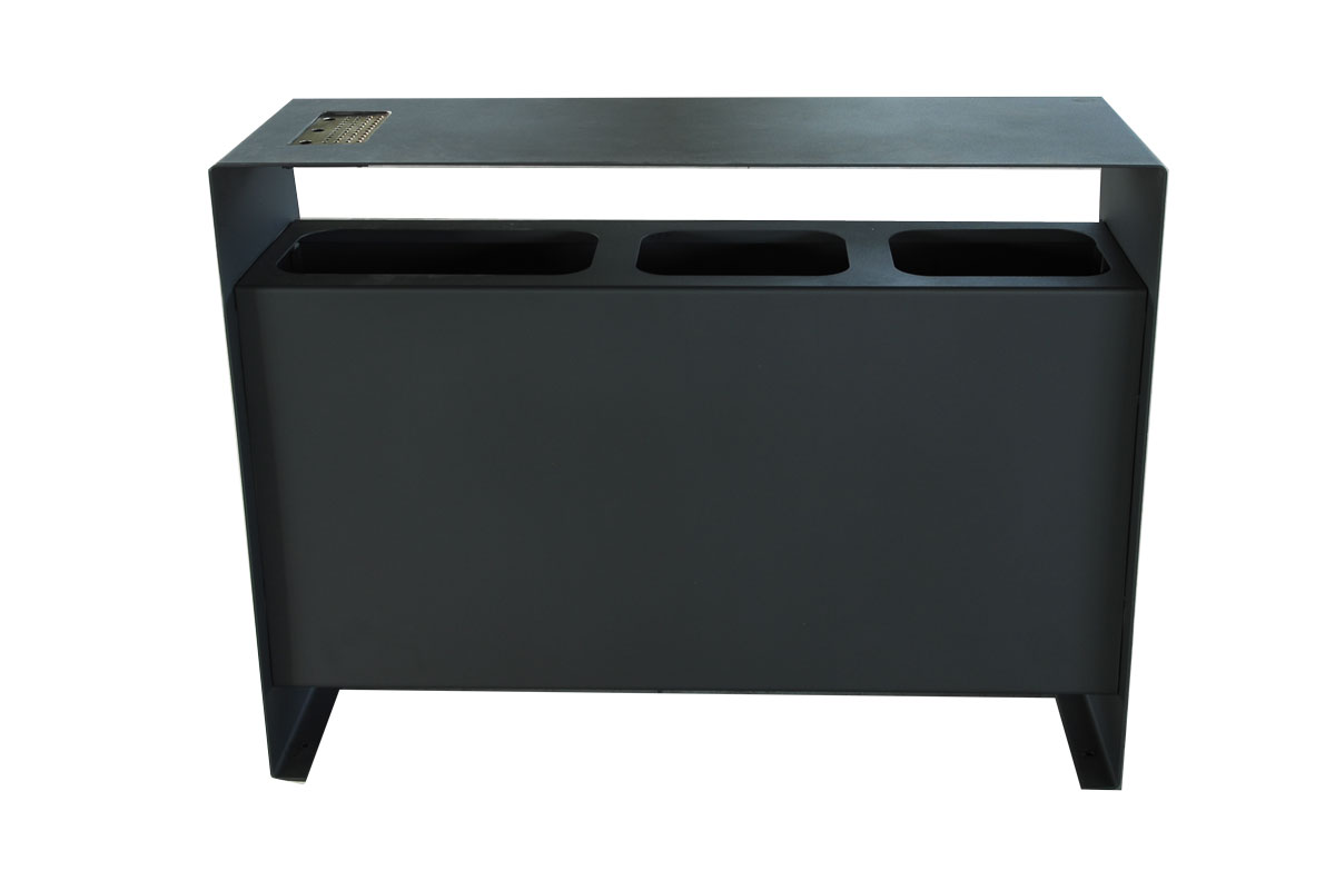 This product is designed for three different types of waste – PET/MET, Paper, and mixed waste. Every section has its own inner bin. Urban waste set is made completely out of non-corrosive material for safe outside use (Stainless steel - AISI 304). Ashtray is located on top part of the set.